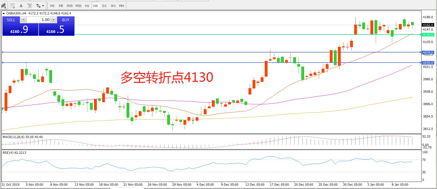 多空转折点:4130.00