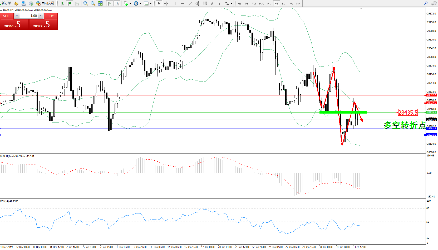 技术点评:空头下行趋势处于布林带指标中下轨区间不短震荡下移中,低位跌破布林带指标下轨后得到短期支撑开始拉升上行,触及中轨附近压制再次回撤,跌势尚未有完全止步迹象,MACD指标处于空头区域弱势整理平移中,RSI指标处于50均衡线下方空头区域窄幅震荡平移中;
