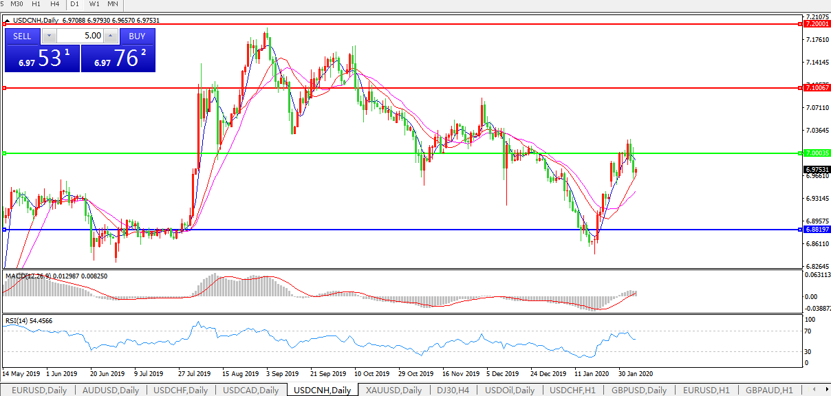 交易策略: 在7.0000之下,看跌,目标价位为6.8820,然后为6.7600。