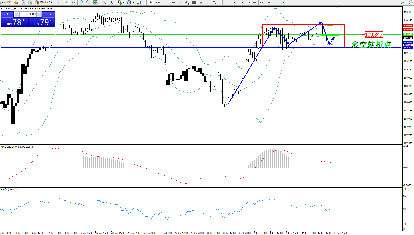 技术点评:多头动力高位维持矩形整理平移中,布林带指标通道处于中下轨区间窄幅震荡,关注中轨附近节点,MACD指标处于多头区域高位缓慢向下移动至0轴线附近徘徊中,RSI指标处于多头区域高位回撤至50均衡线附近整理中;