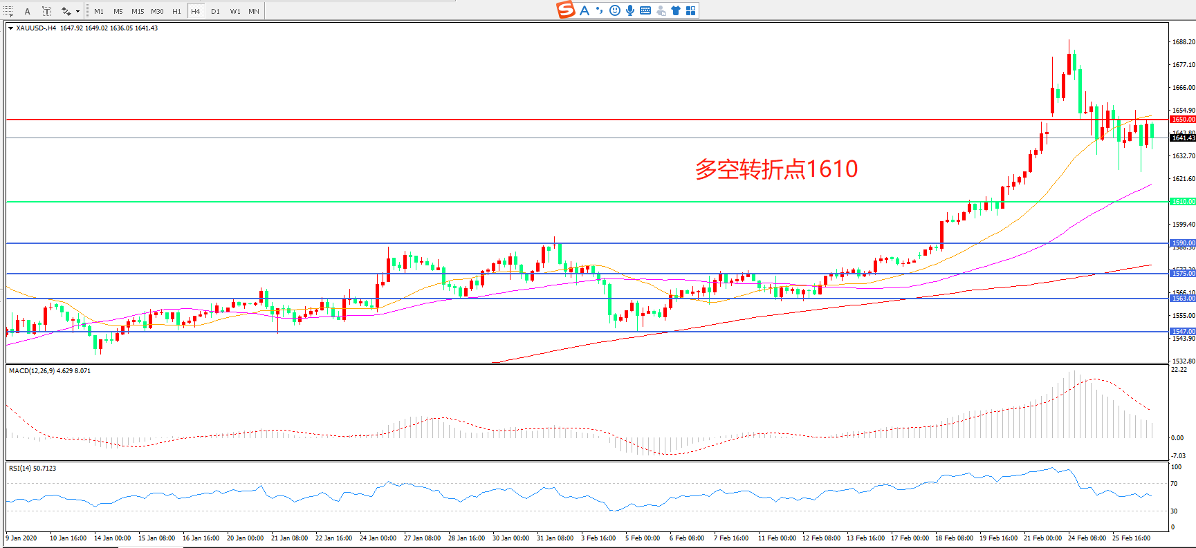 备选策略:在1610.00之下看跌,目标1650.00 1700.00
