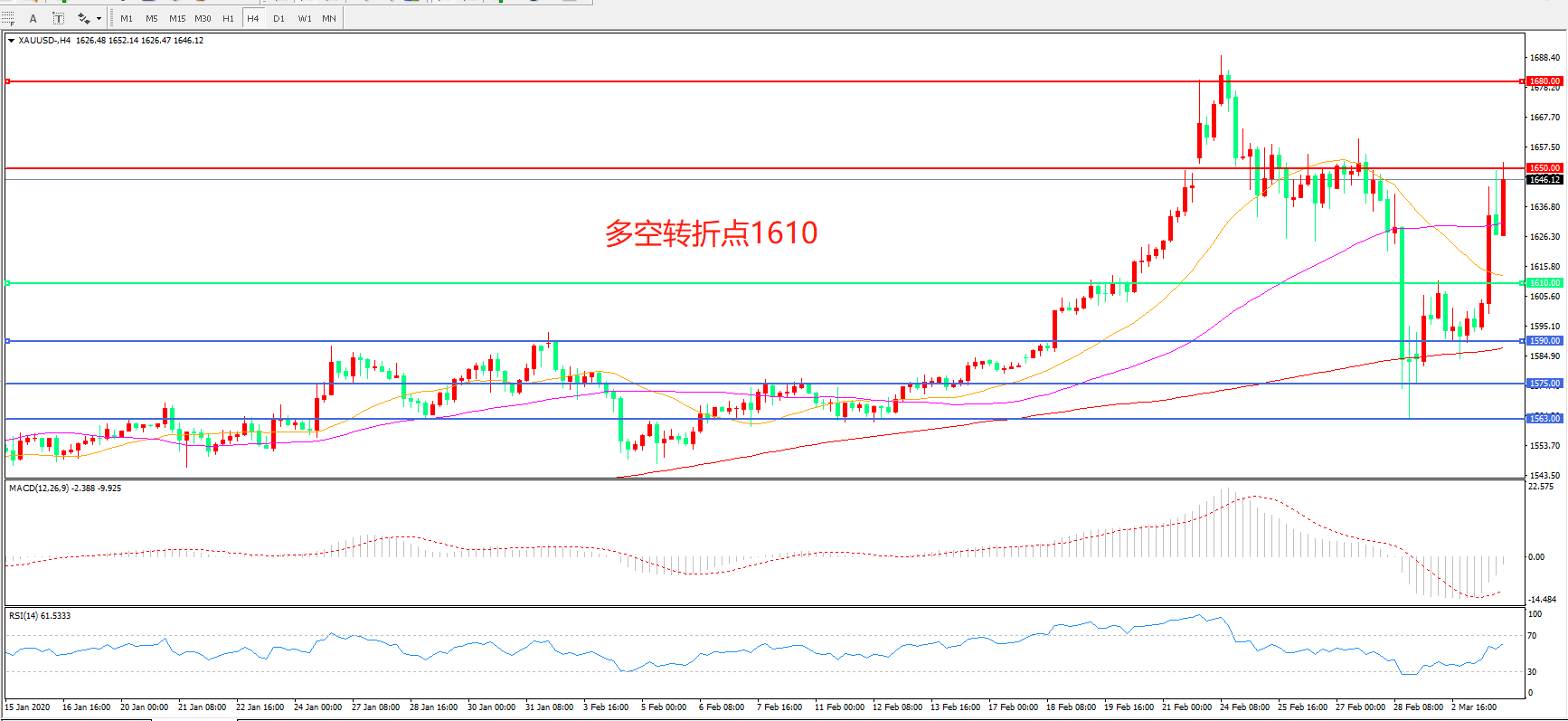 多空转折点:1610.00