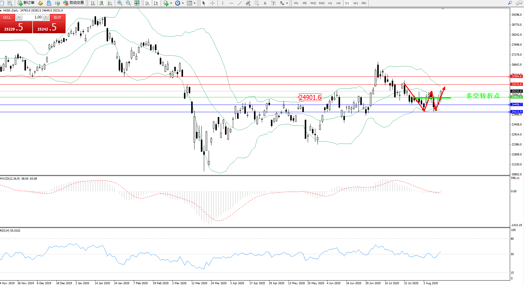 技术点评:空头动力弱势震荡回撤至布林带指标中下轨区间呈W底形态走势后开始拉升上扬,上方关注布林带指标上轨附近节点,多头有继续上行态势,布林带指标呈收口走势中,关注中轨附近转折点,MACD指标长时间处于0轴线下方维持弱势整理平移中,RSI指标纠结于50均衡线下方整理后有上扬迹象;
