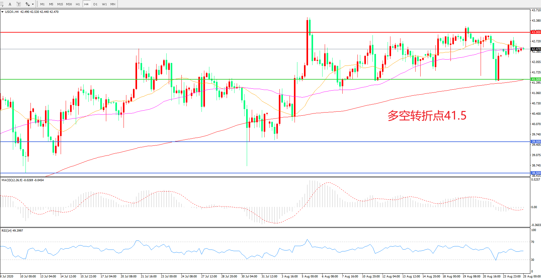 交易策略:在41.50之上看涨,目标43.00 46.00