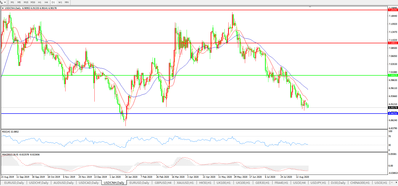 备选策略: 在7.1000之上,看涨,目标价位为7.2000,然后为7.3000。