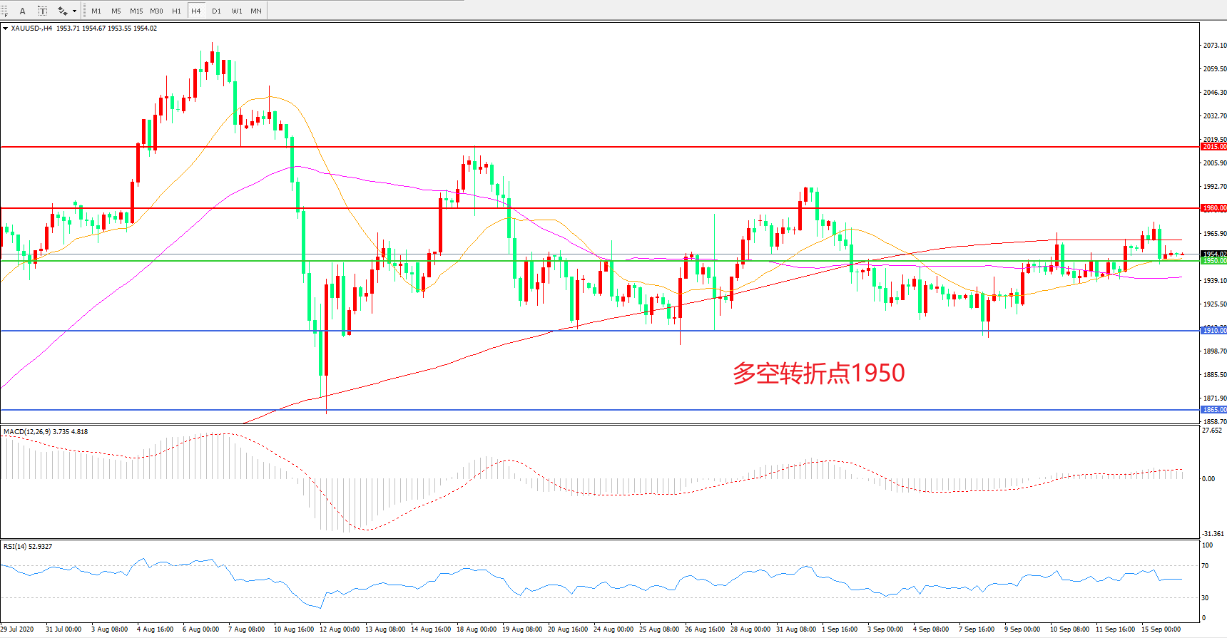 交易策略:在1950之上看涨,目标1980.00   2015.00