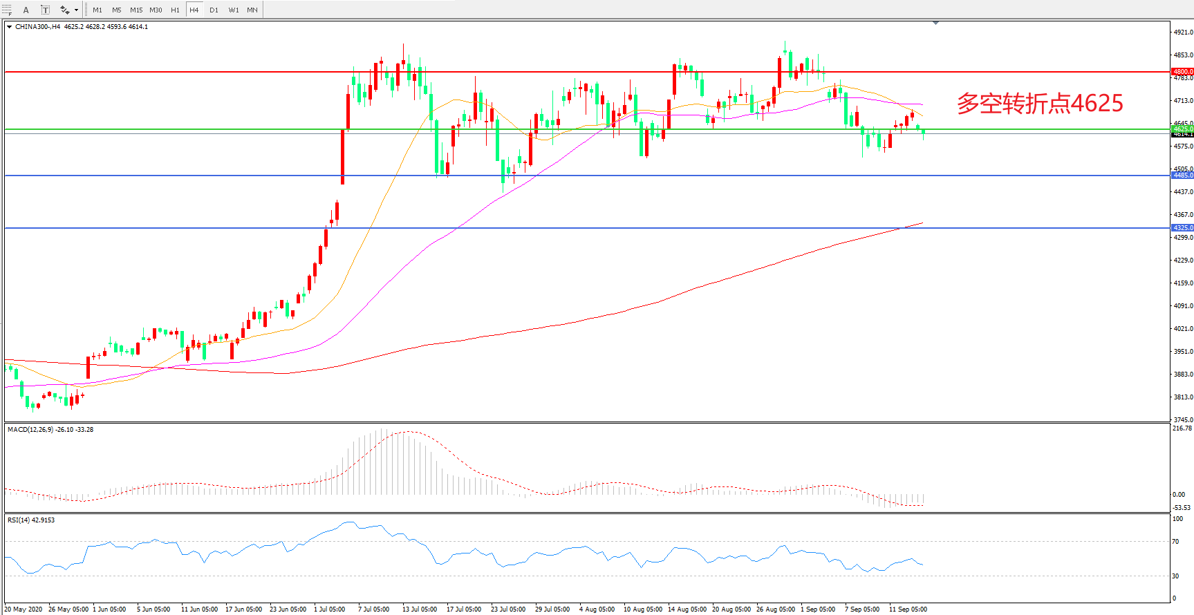 多空转折点:4625.00
