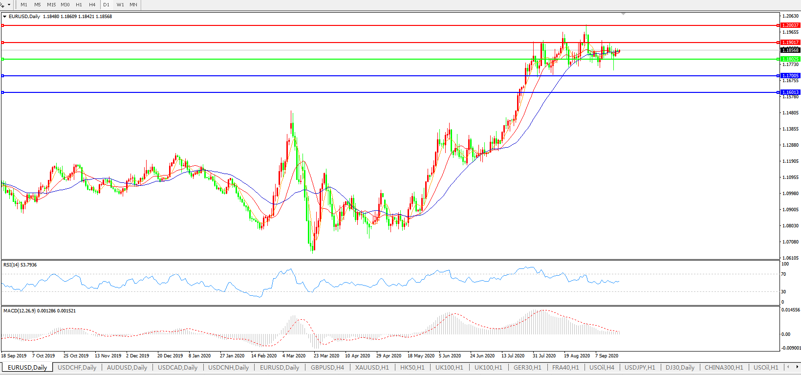 交易策略:1.1800上方看涨,目标1.1900、1.2000