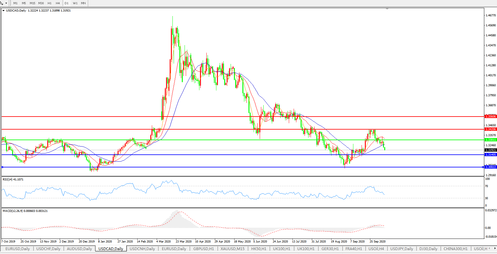 美元兑加元USDCAD 日线图: