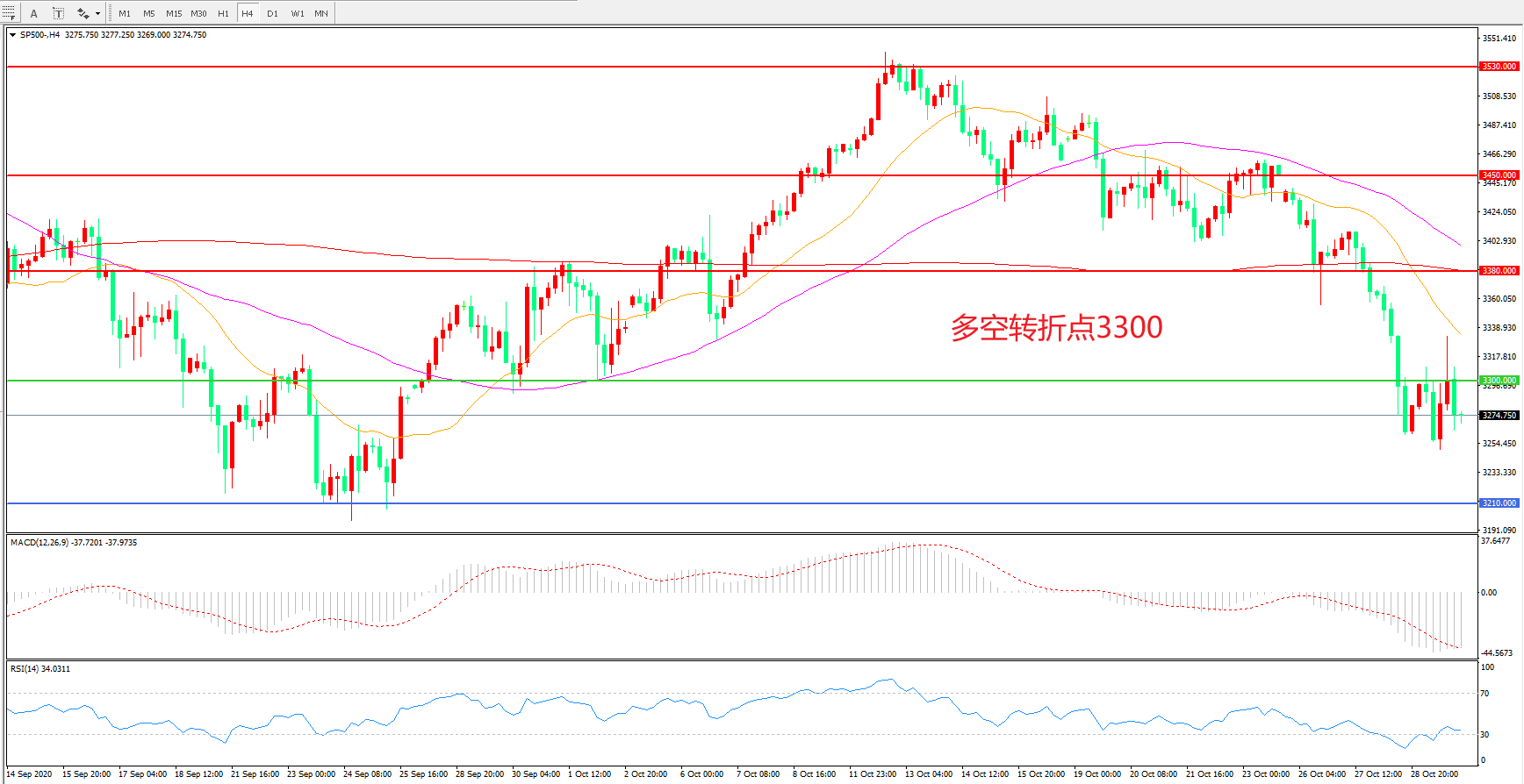 多空转折点:3300.00