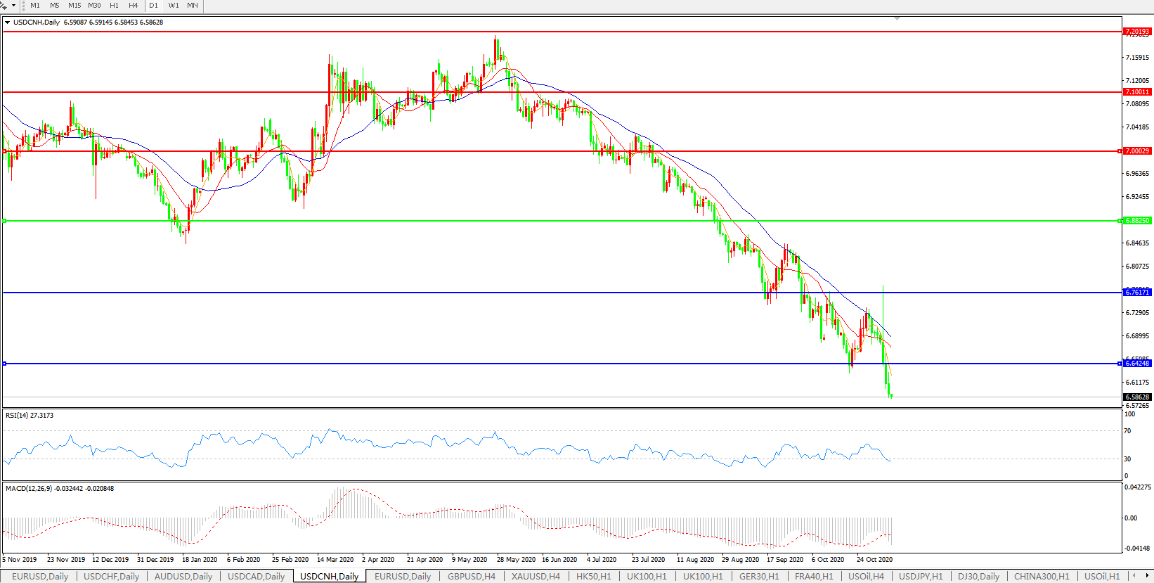 美元兑人民币USDCNH    日线图: