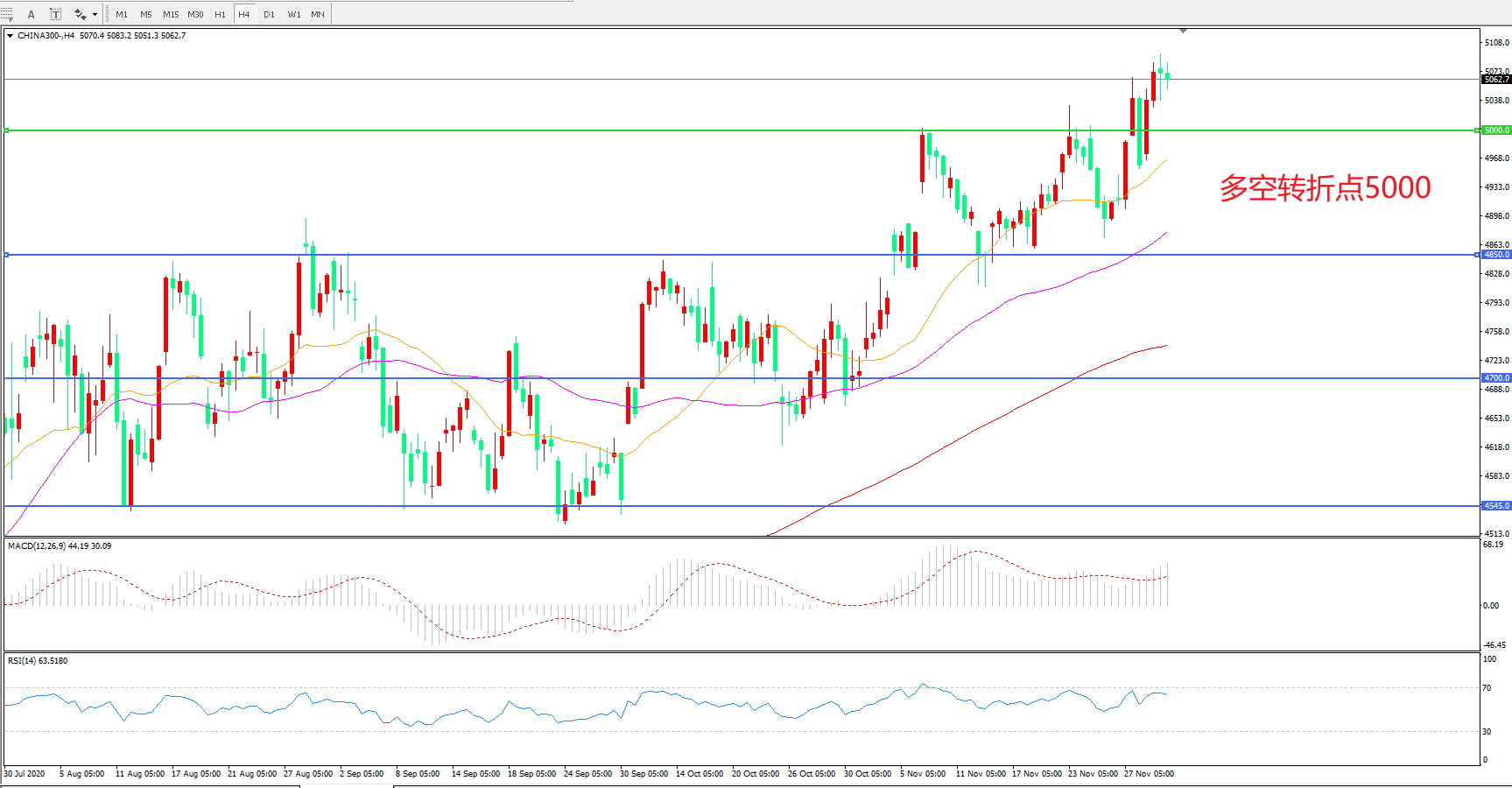 交易策略:在5000.00之上看涨,目标5150.00       5300.00