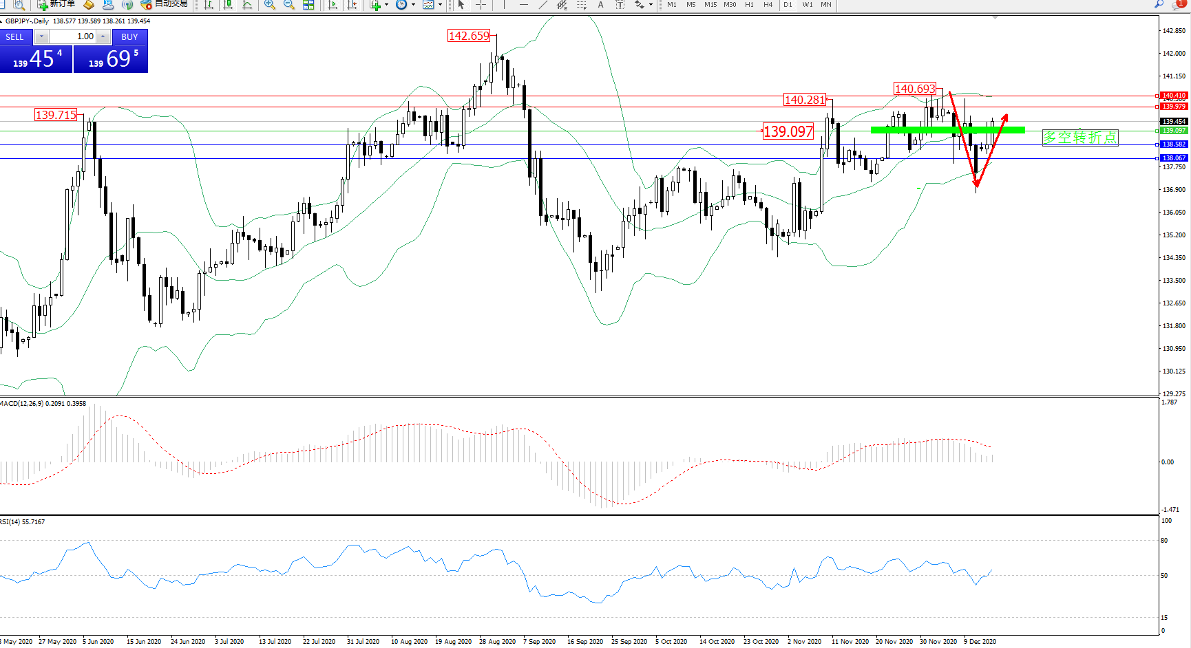 交易策略:139.097上方看涨,目标139.979、140.410