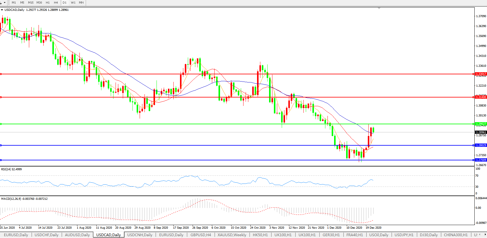 交易策略:在1.2950之下,看跌,目标价位为1.2800、1.2700