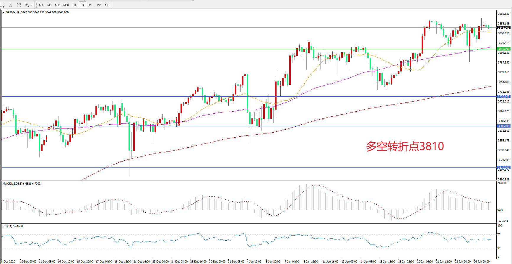 多空转折点:3810.00
