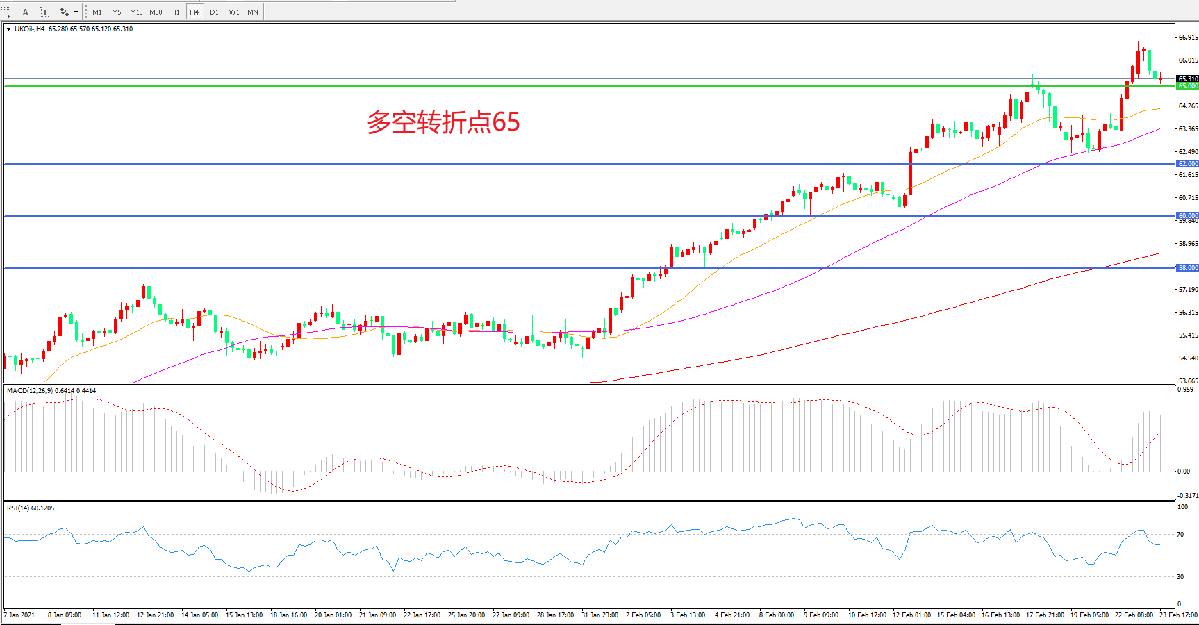 多空转折点:65.00
