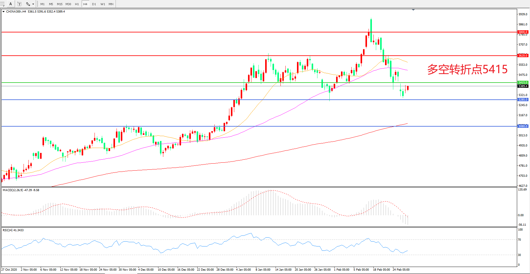 多空转折点:5415.00