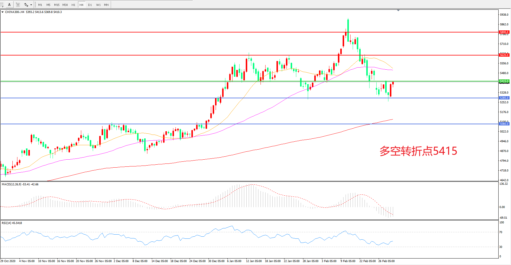 多空转折点:5415.00