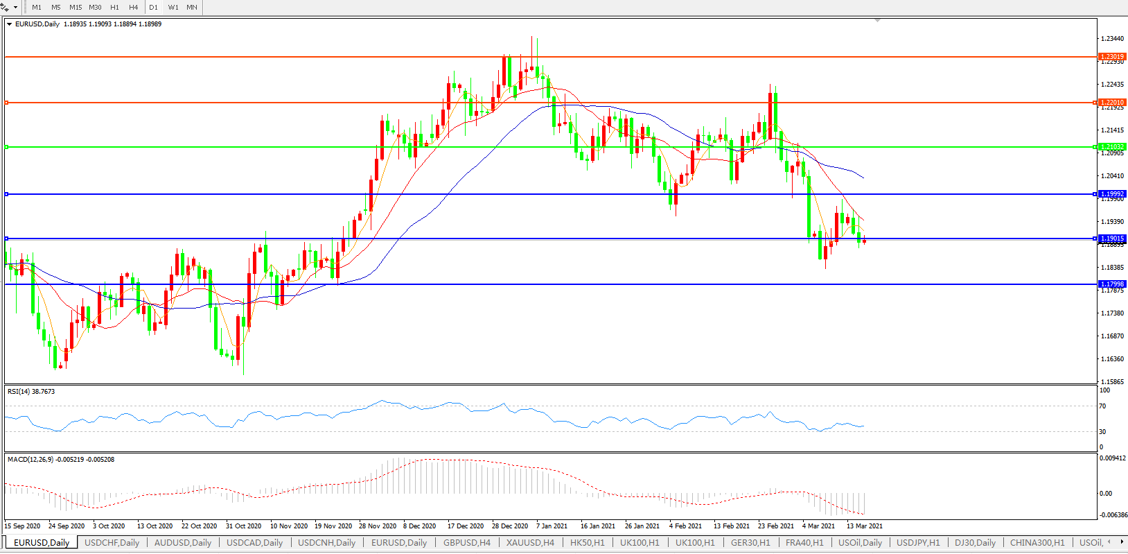 交易策略:1.2100下方看跌,目标1.2000、1.1900