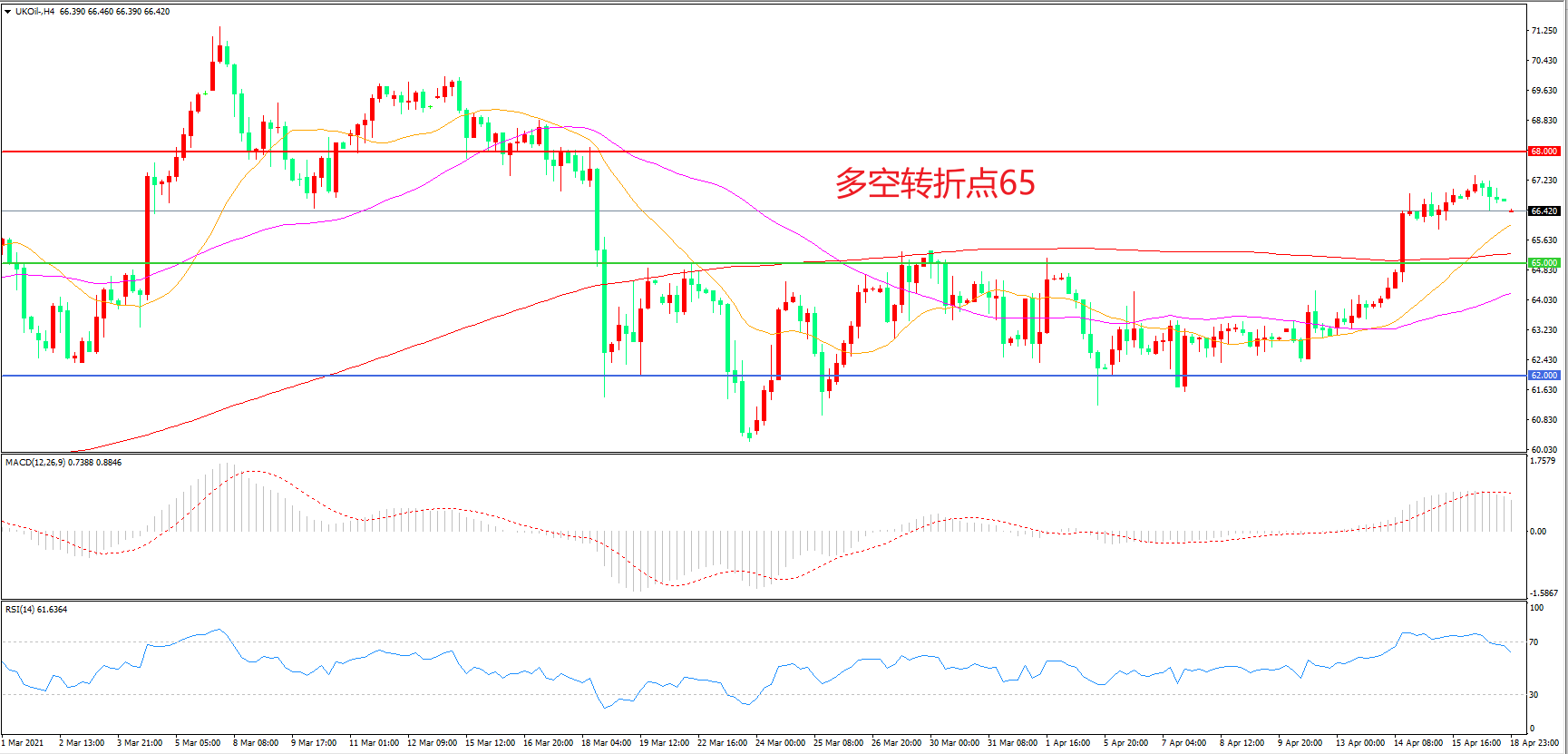 交易策略:在65.00之上看涨,目标68.00 72.00