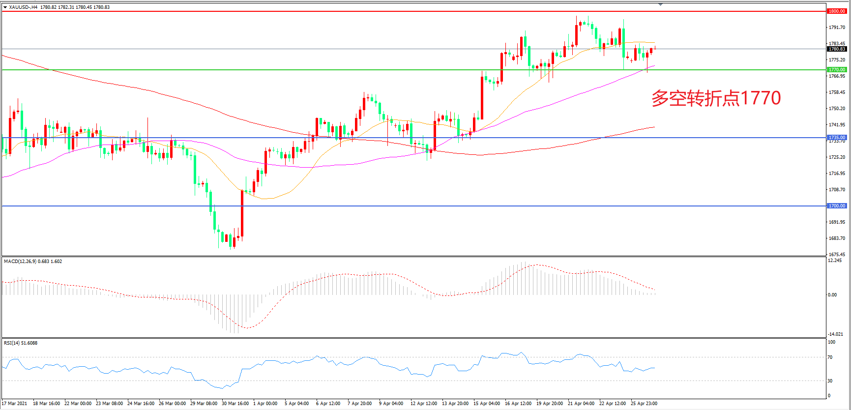 交易策略:在1770.00之上看涨,目标1800.00    1840.00