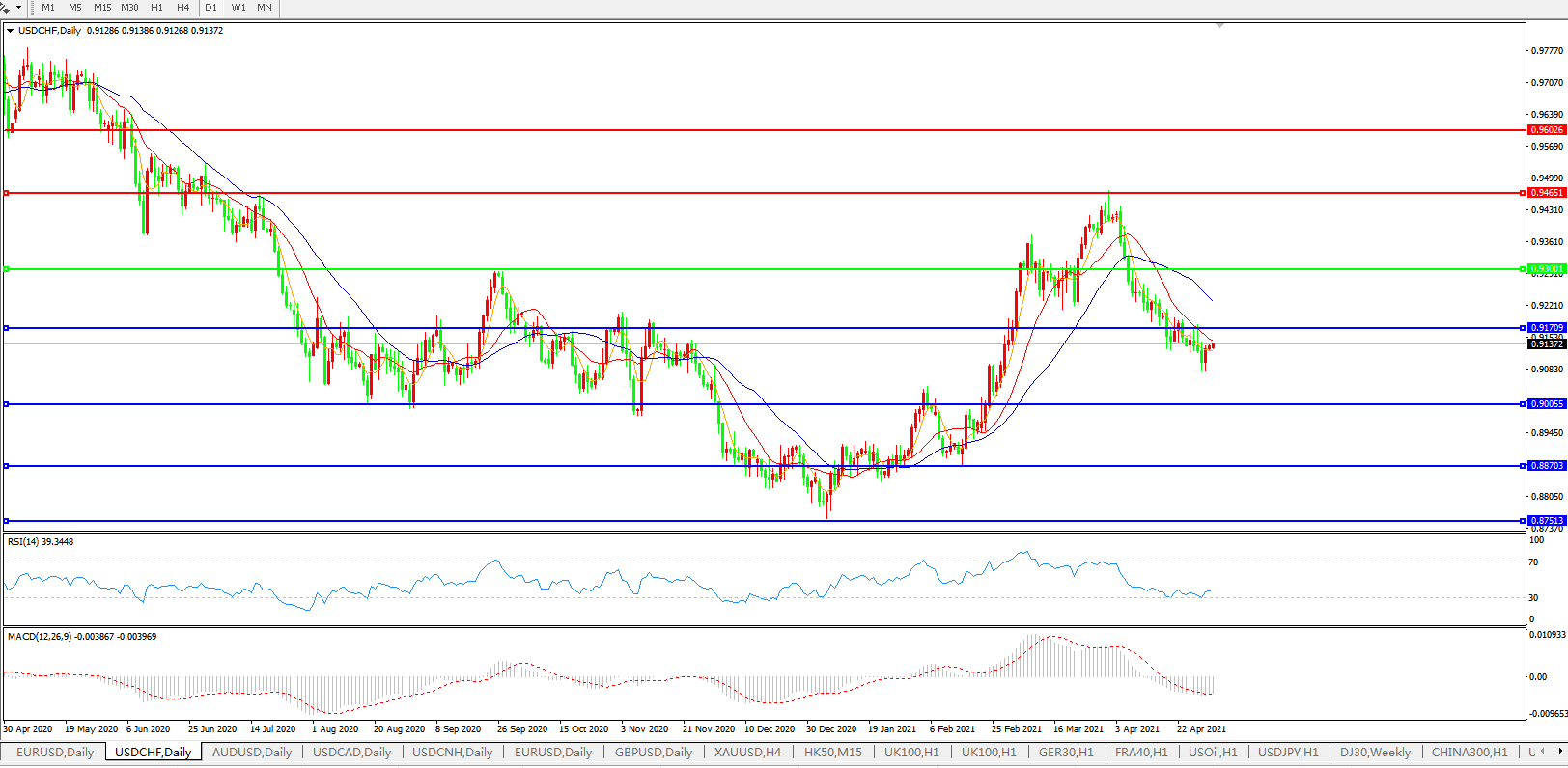 美元兑瑞郎USDCHF 日线图: