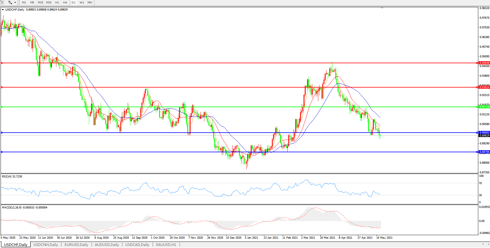 美元兑瑞郎USDCHF    日线图: