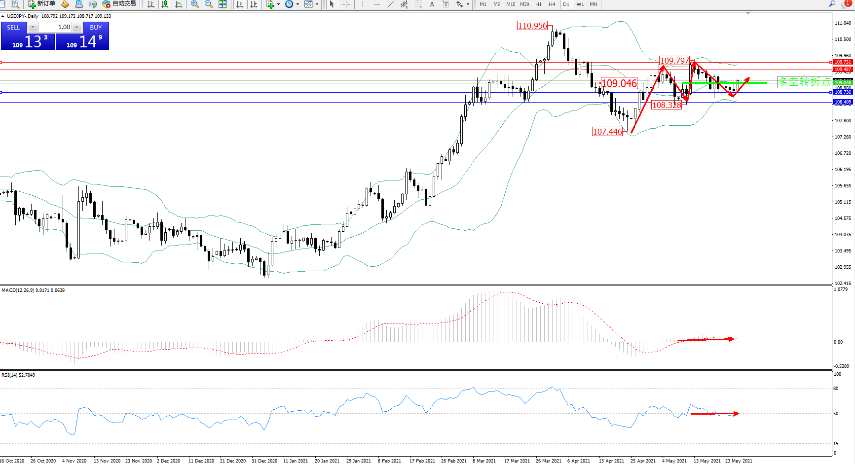 多空转折点:109.046