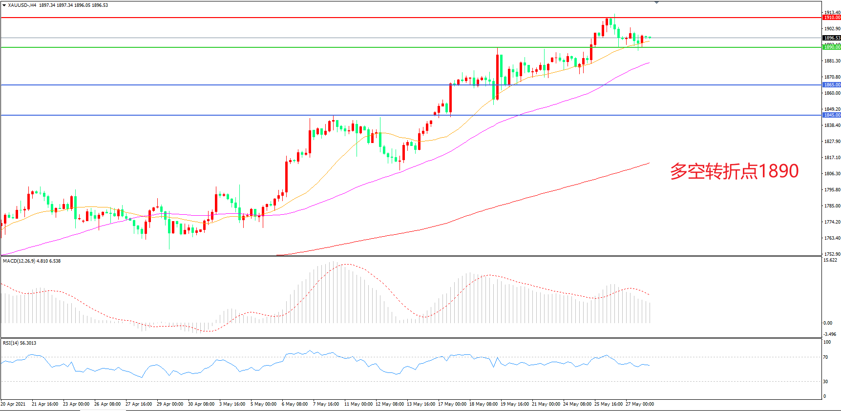 多空转折点:1890.00