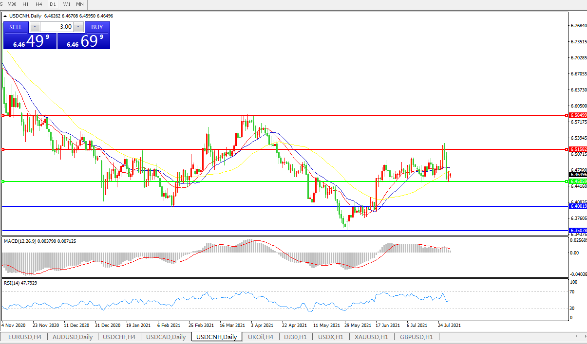 备选策略: 在6.4505之下,看跌,目标价位为6.4000,然后为6.3505。