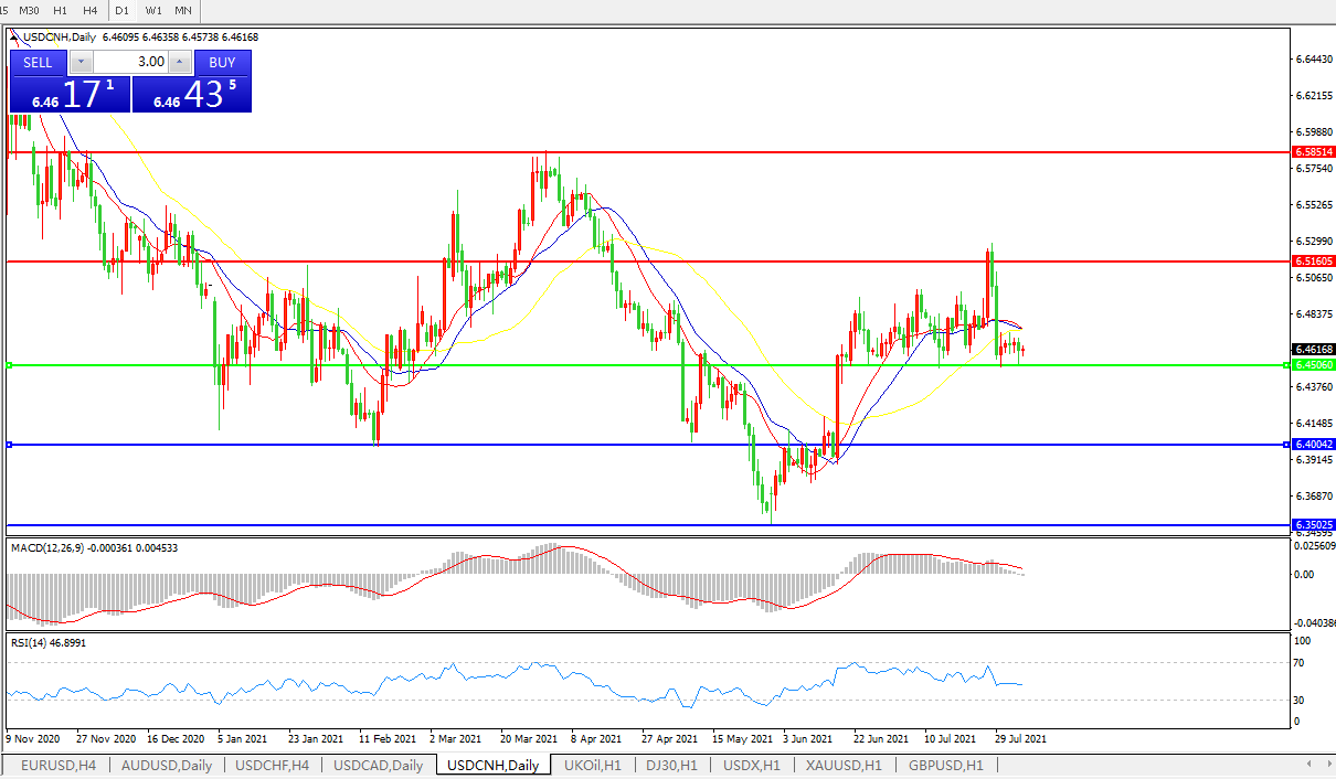 备选策略:在6.4505之下,看跌,目标价位为6.4000,然后为6.3500。