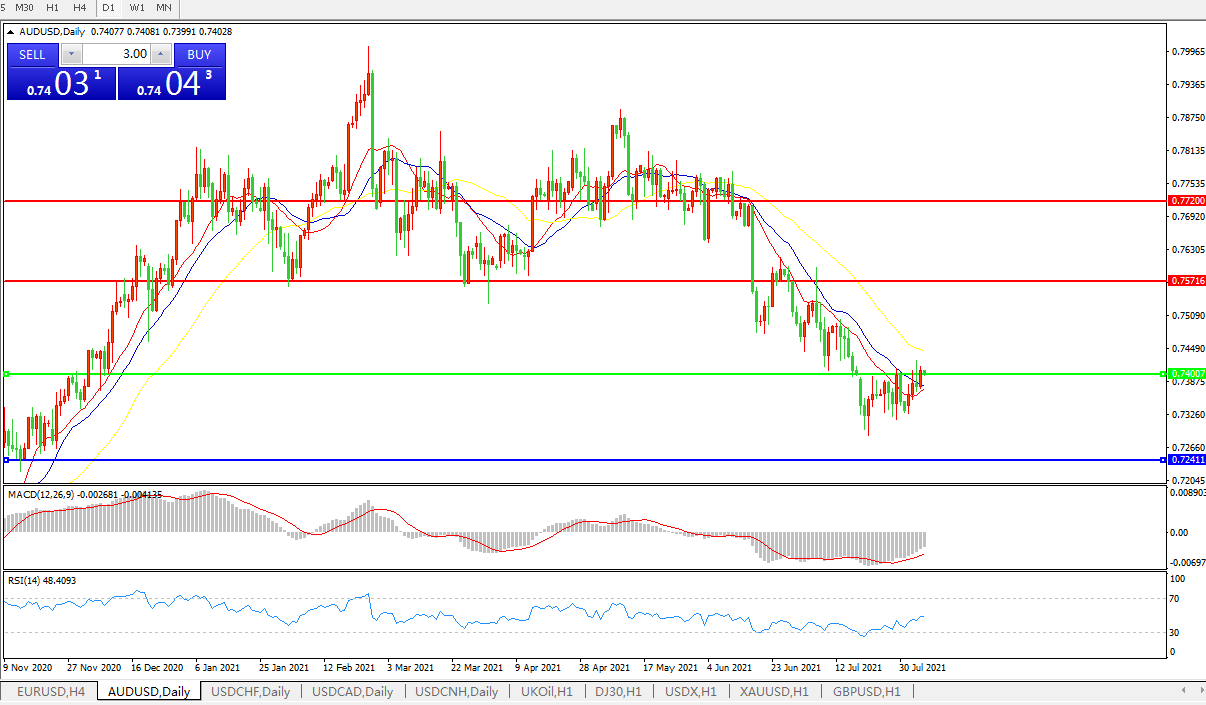 交易策略:0.7400下方看跌,目标0.7240、0.7080