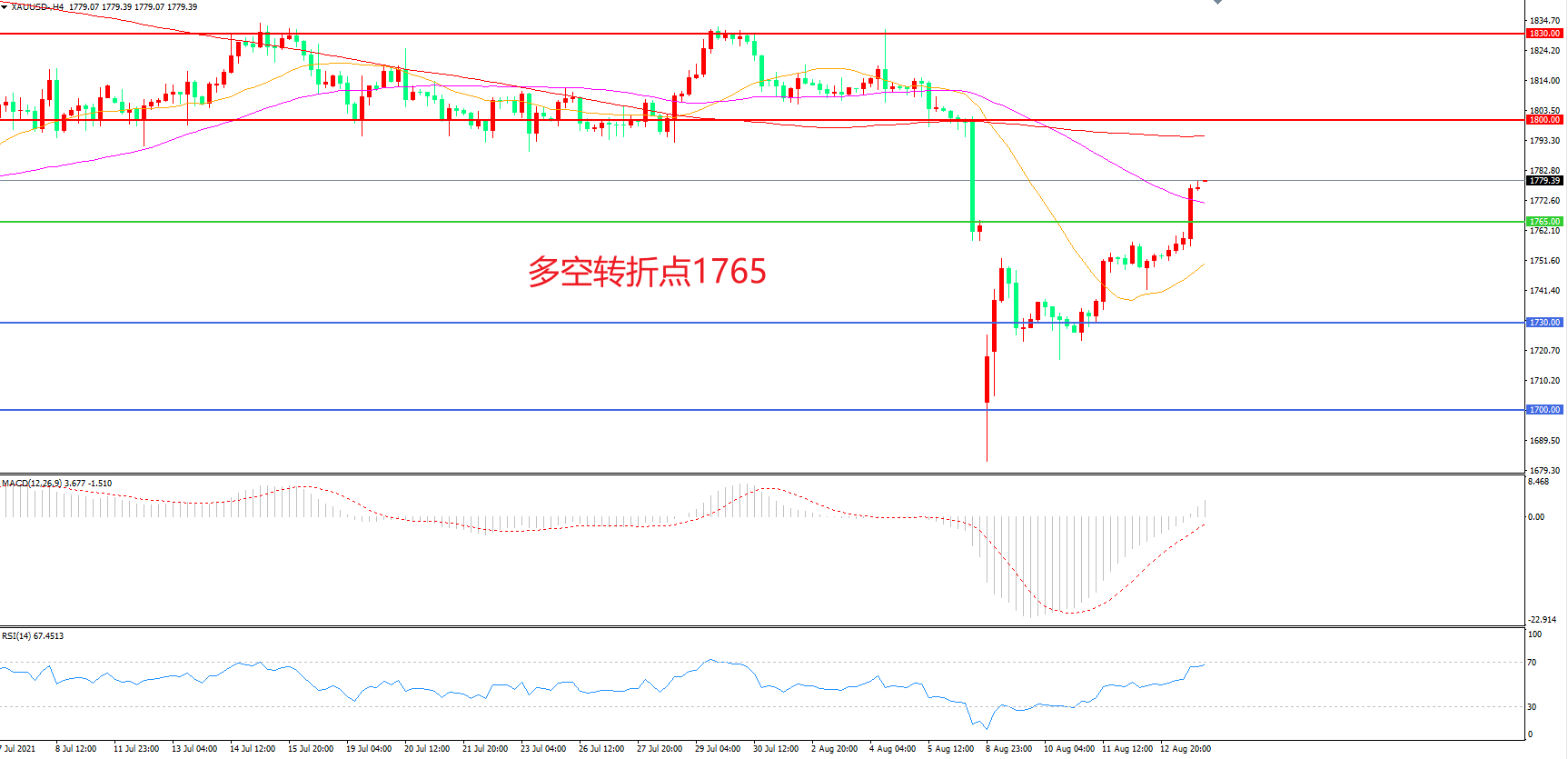 多空转折点:1765.00