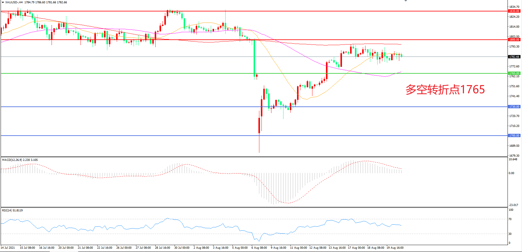 交易策略:  在1765.00之上看涨,目标1800.00           1830.00
