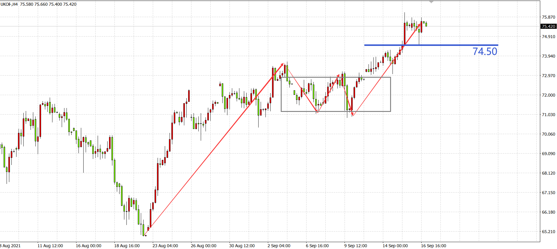 交易策略:在74.50之下看跌,目标73.50            72.00
