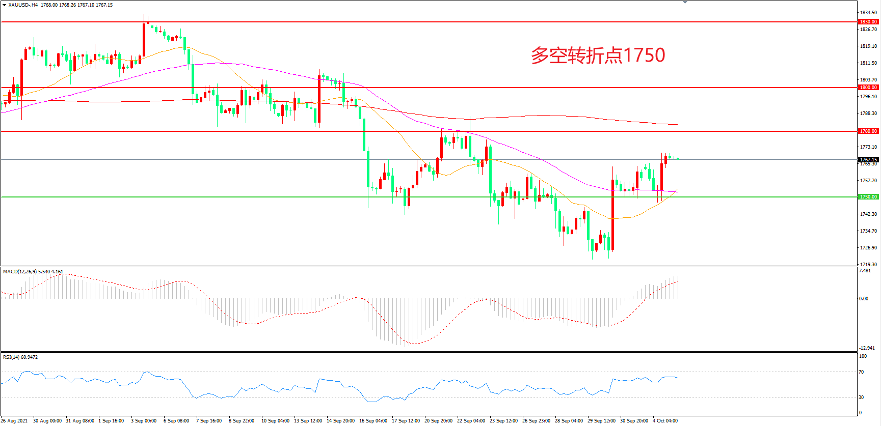 多空转折点:1750.00