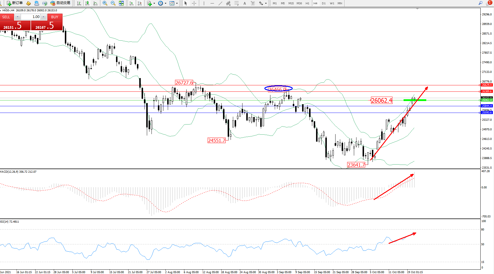 恒指HK50 ——4小时K线图显示:
