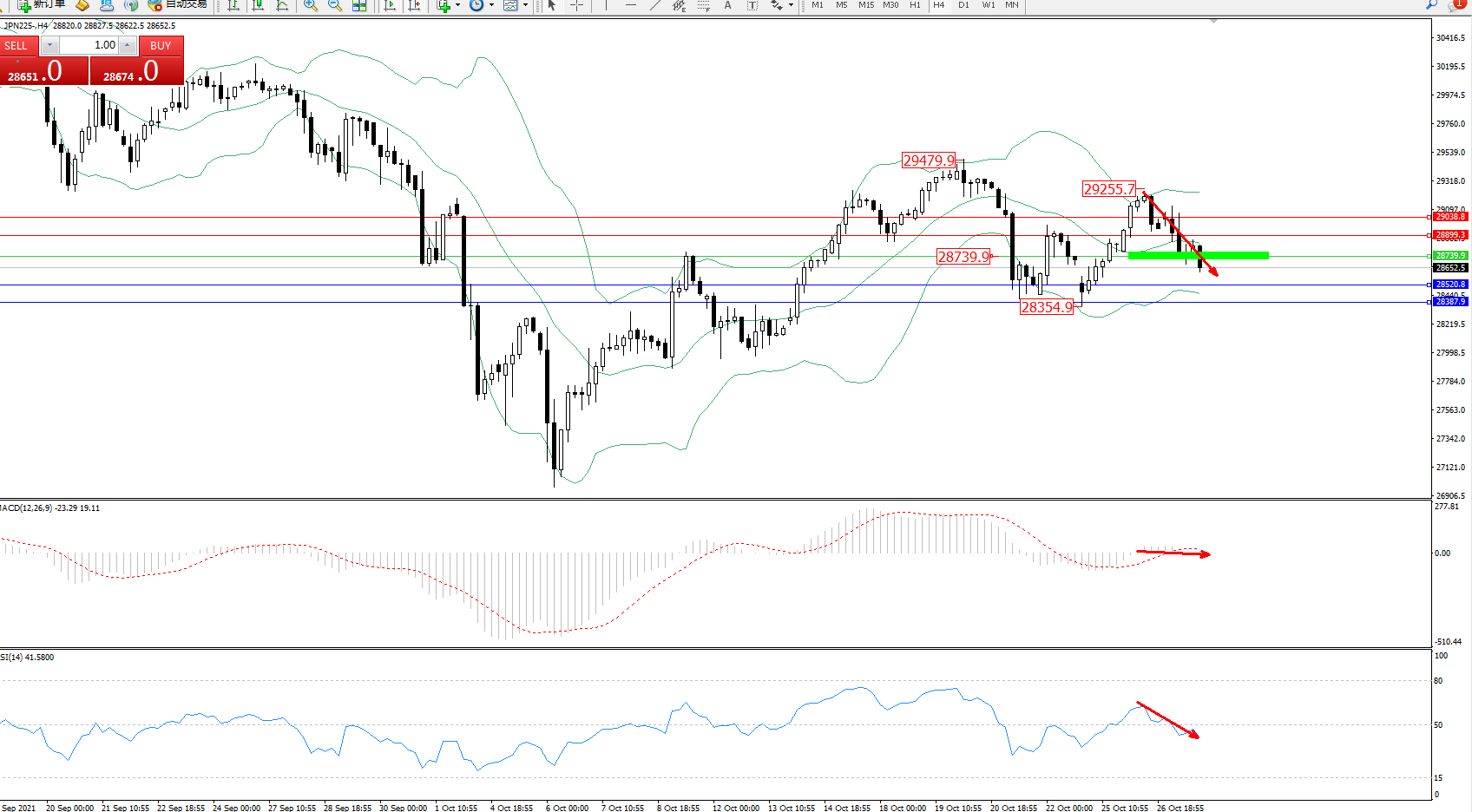 日经指数JPN225——4小时K线图显示: