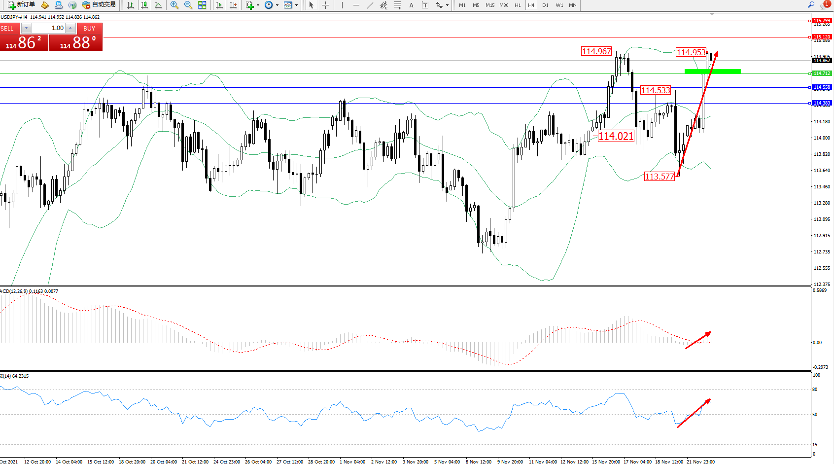 交易策略:114.712上方看涨,目标115.120、115.299