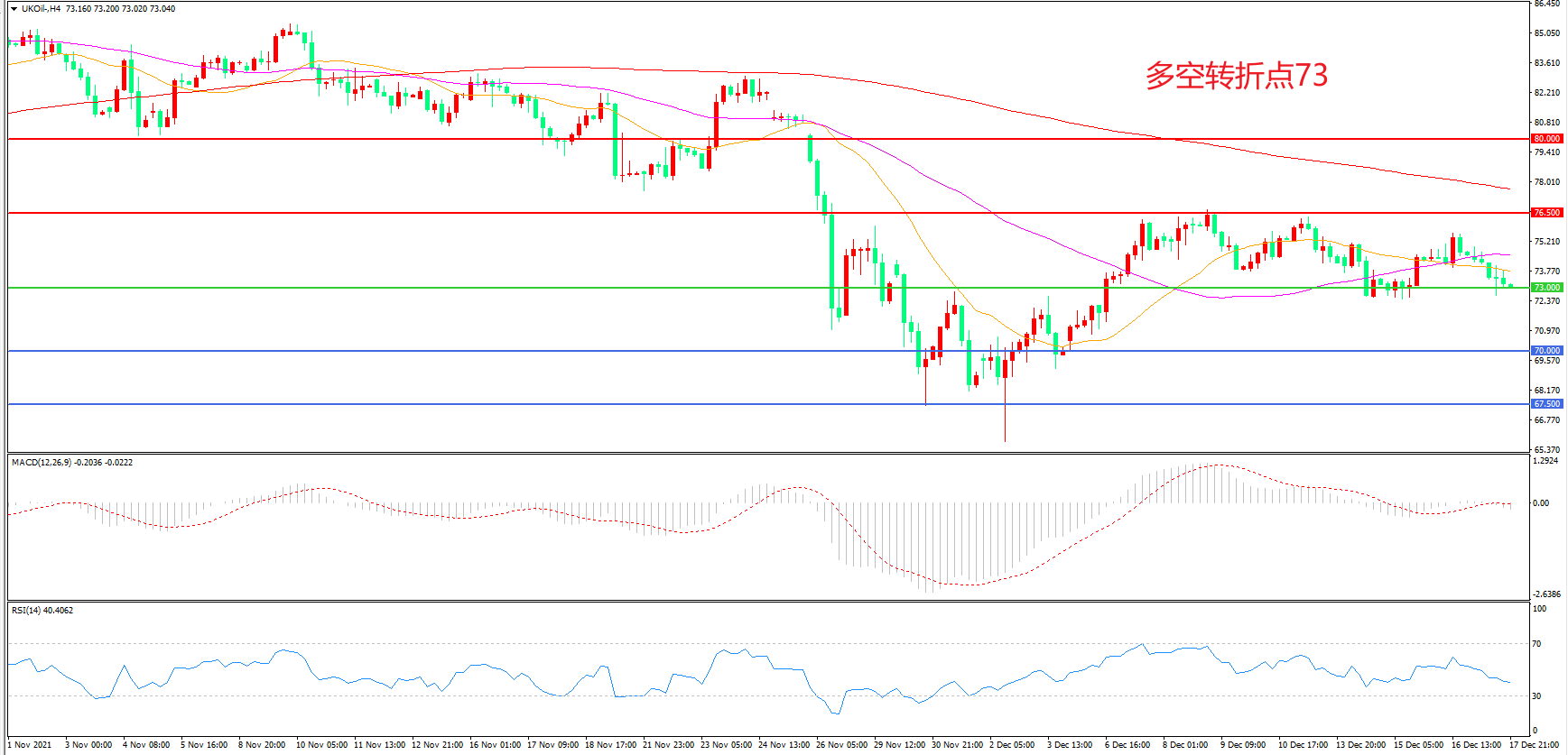 多空转折点:73.00