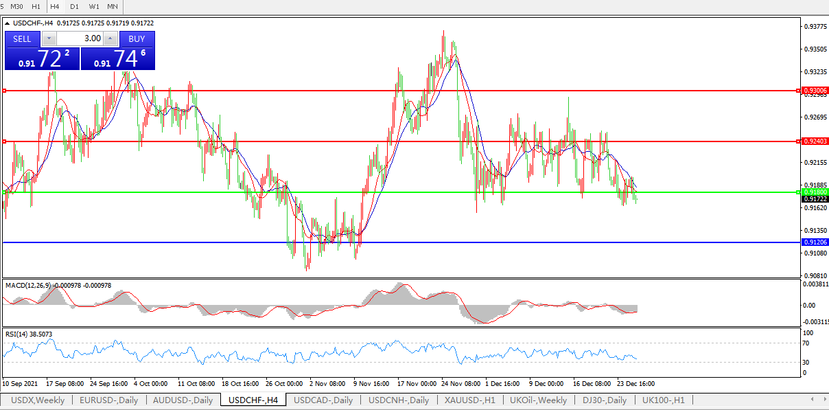 交易策略:0.9180下方看跌,目标0.9120、0.9040
