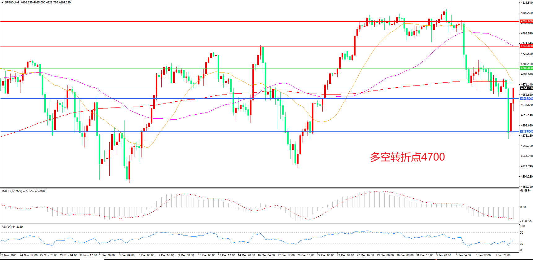 交易策略:在4700.00之下看跌,目标4645.00 4585.00