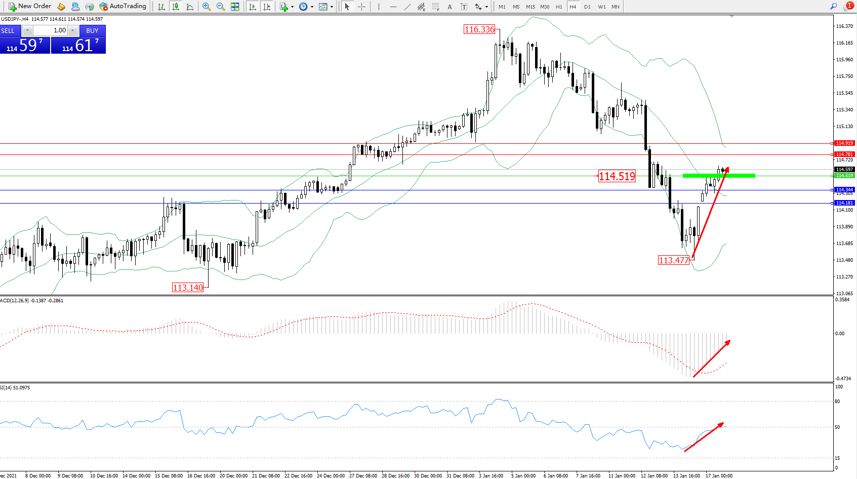 交易策略:114.519上方看涨,目标114.781、114.919