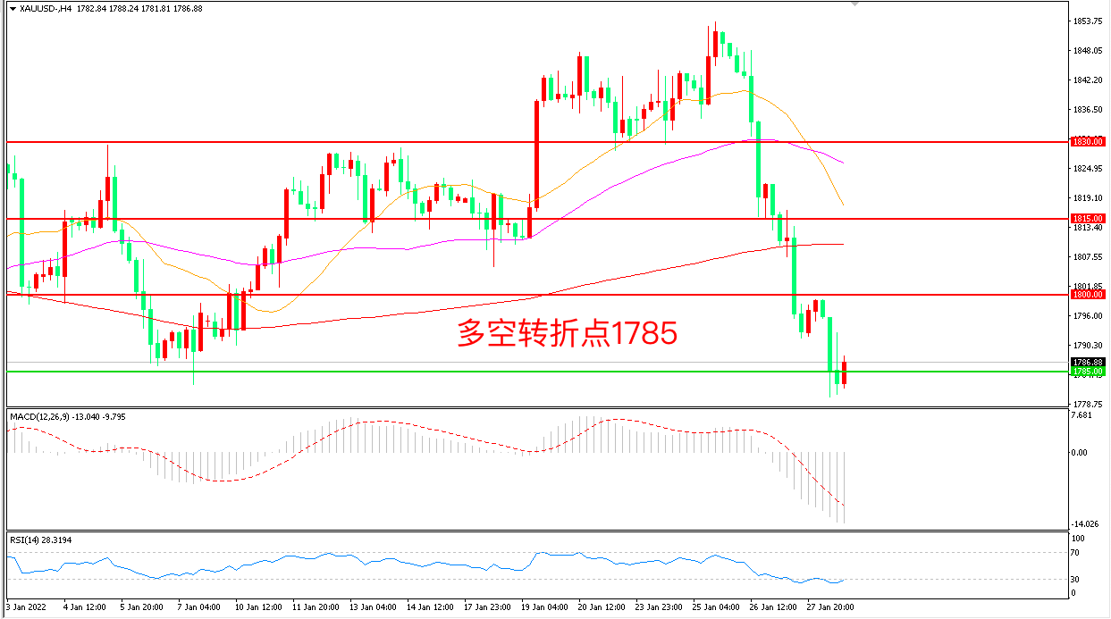 交易策略:在1785.00之下看跌,目标1760.00 1740.00