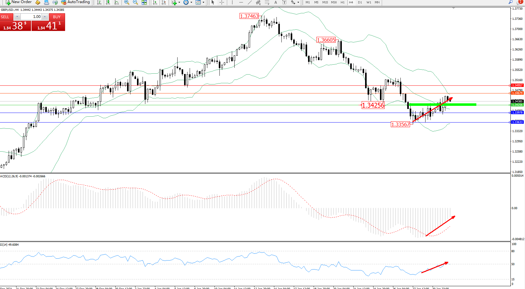 交易策略:1.34256上方看涨,目标1.34679、1.34957