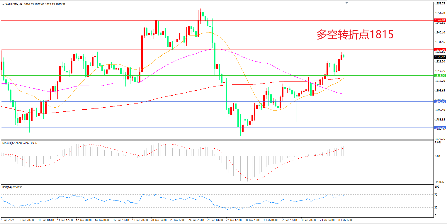 交易策略:在1815.00之上看涨,目标1830.00 1847.00
