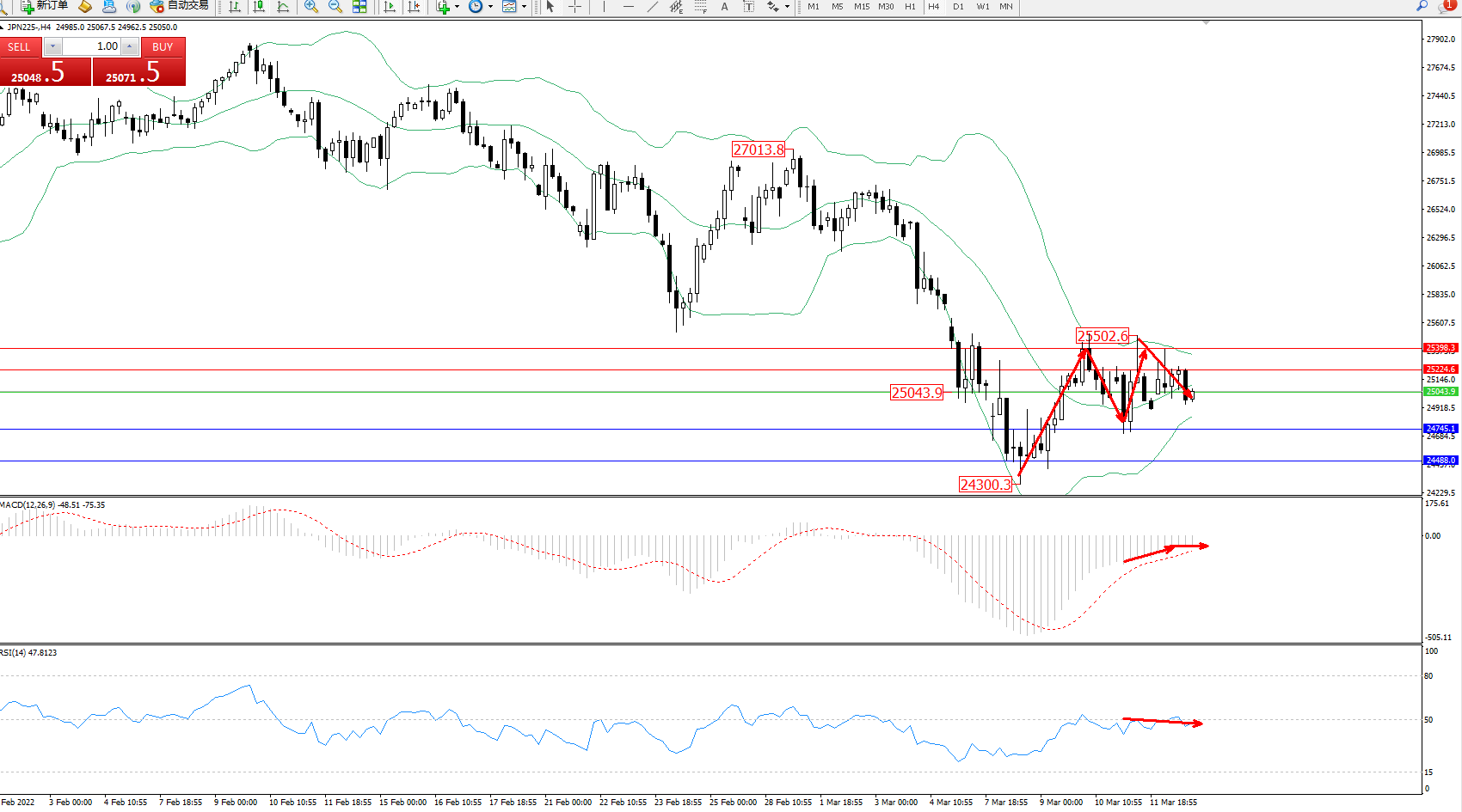 日经225指数3月14日(周一)收盘上涨152.72点,涨幅0.61%,报25315.50点。日本首相岸田文雄:物价飞涨将对日本经济产生影响。准备出台应对物价上涨的政策。没有考虑改变消费税。油价上涨开始影响日本经济。日本首相岸田文雄在国会委员会听证会上发言时表示,乌克兰局势和俄罗斯的行动表明,必须改革联合国安理会,建立新的世界秩序。