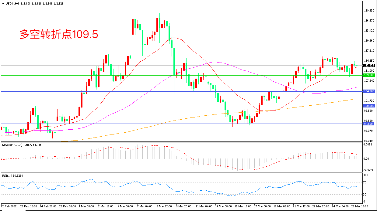 上周五(3月25日),沙特阿拉伯的一家石油储存设施遭到袭击,令本就脆弱的原油供应再添不确定性。美国WTI原油延续强势表现,收报112.62美元/桶。供需层面,美国和英国已采取行动禁止进口俄罗斯石油,许多能源公司也都避开俄罗斯原油,在伊朗暂时无法回归原油市场的情况下,本周举行的OPEC是否会在会议中决定增产将成为市场关心的重点。