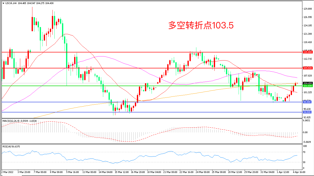 交易策略:在103.50之下看跌,目标109.50 115.00