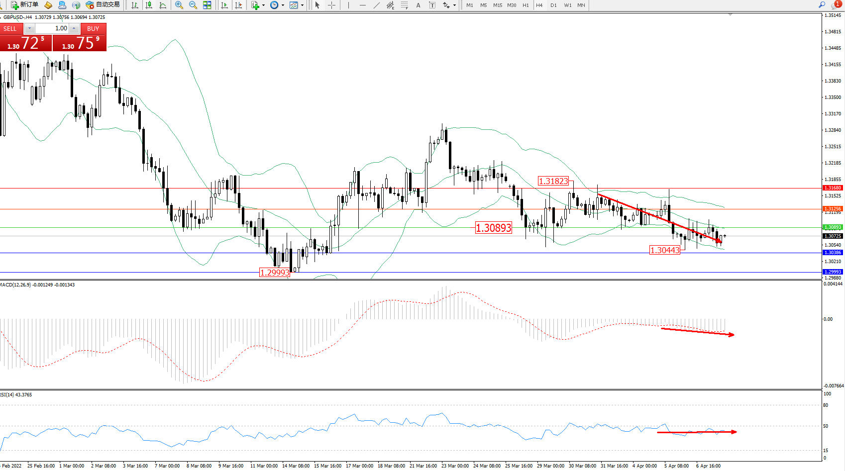 英镑美元GBPUSD ——4小时K线图显示: